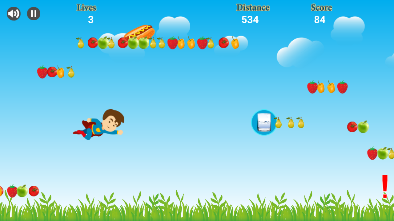 Harmful fast food represents obstacles, you have to avoid them as much as possible, a warning signal will appear to alert you before they appear.