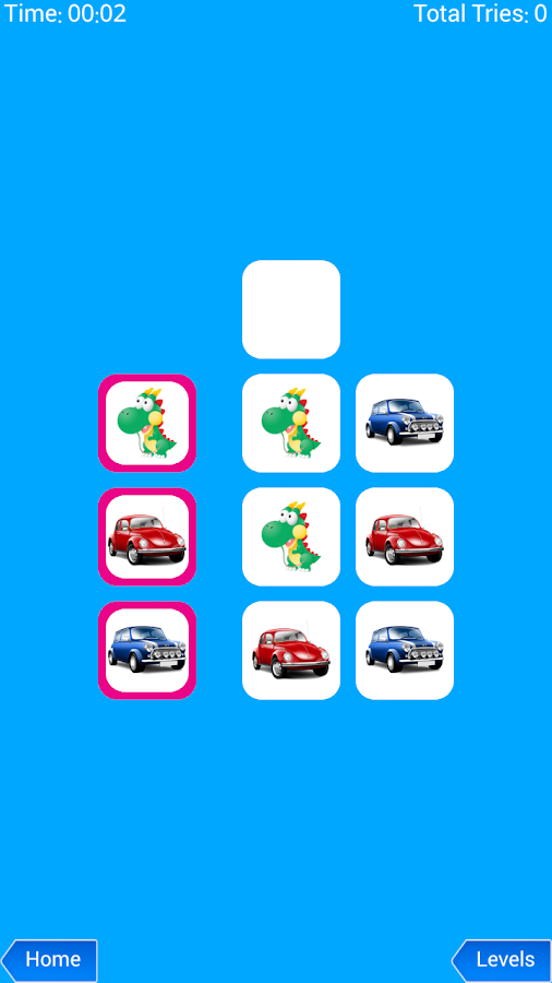 The game is a sliding tiles puzzle where ordering the same boxes by the boxes of the left column. You can only move the boxes that are close to the white one.